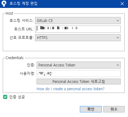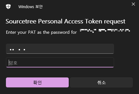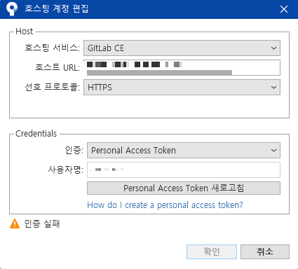 그래서 소스트리 상단의 도구 > 옵션 > 인증 > 해당계정의 편집 > Personal Access Token 새로고침을 누르면