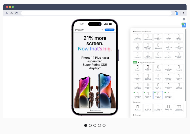 구글 확장프로그램에서 Mobile simulator - responsive testing tool 을 설치하여
